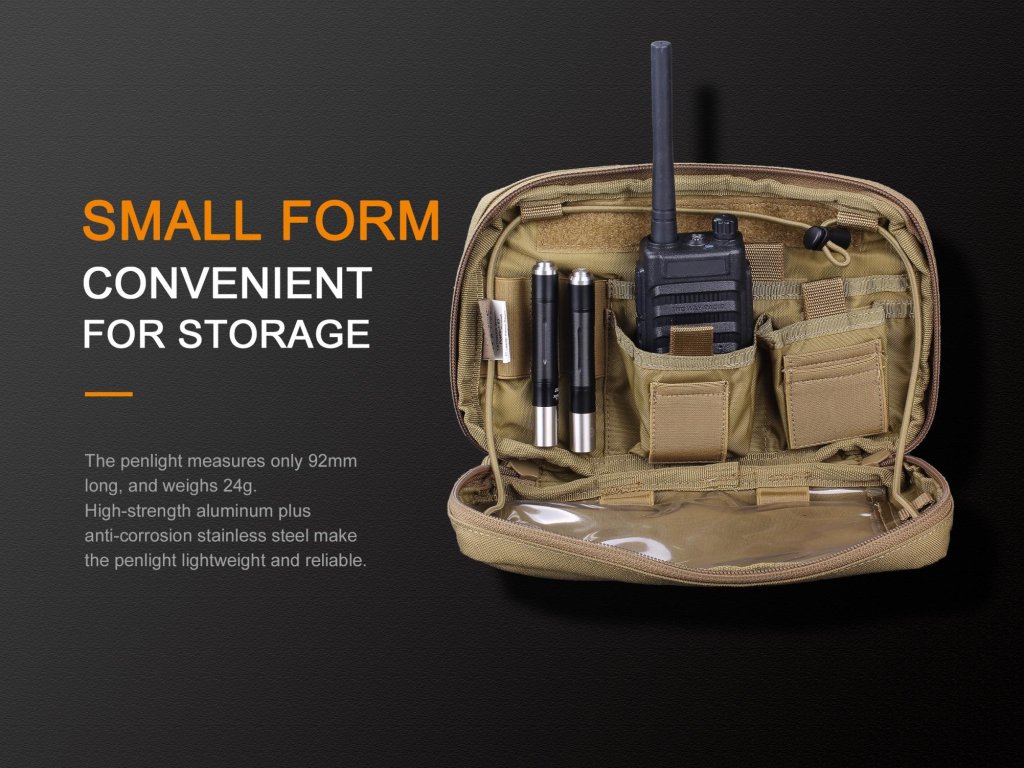LD02 disponuje tromi rôznymi úrovňami svietenia a jedným UV režimom, čo užívateľom umožňuje zvoliť ten vhodný kompromis medzi intenzitou osvetlenia a dobou prevádzky. Fenix LD02 používa bežne dostupné mikrotužkové batérie a vďaka svojej takmer zanedbateľnej veľkosti a váhe je ideálna pre každodenné použitie (Everyday Carry - EDC). Ak hľadáte solídnu, spoľahlivú a výkonnú baterku v čo najmenšej veľkosti s UV svetlom navyše, potom je Fenix LD02 presne pre vás.