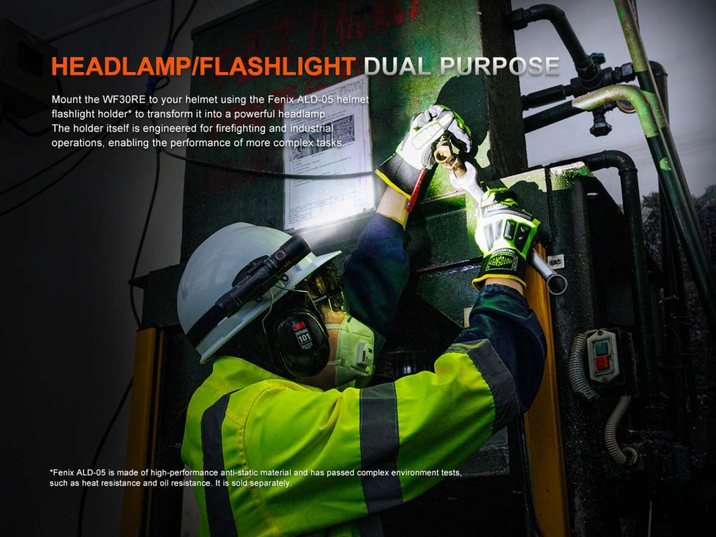 Profesionálne nabíjacie svietidlo Fenix WF30RE je vybavené certifikáciou ATEX/IECex na použitie vo výbuš. prostredí. Svietidlo je napájané špeciálne upraveným Li-ion akumulátorom ARB-L21-3000Ex s kapacitou 3000 mAh a poskytuje svetelný tok až 300 lúmenov s dosvitom 149 metrov. Akumulátor sa dobíja priamo v svietidle prostredníctvom USB-C konektora. Telo svietidla je vyrobené z leteckého hliníka s vysokou odolnosťou a nárazuvzdornosťou. Svietidlo je určené zvlášť pre hasičov a záchranárov, ďalej je vhodné ako pracovné svietidlo do priemyselných prevádzok s možnosťou výskytu výbuš. prachov a plynov. Ide napríklad o chemičky, rafinérie, textilky, papierne, mlyny, metalurgické prevádzky, elektrárne a ďalšie prevádzky.