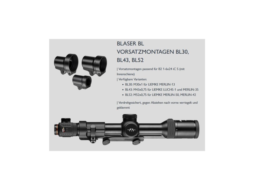 V kombinácii s ľahko montovateľnými, absolútne opakovateľnými nadstavcami a zodpovedajúcou optikou uchytenia sa lovecké optiky Blaser B2 stávajú skutočnými špecialistami na nočný lov.