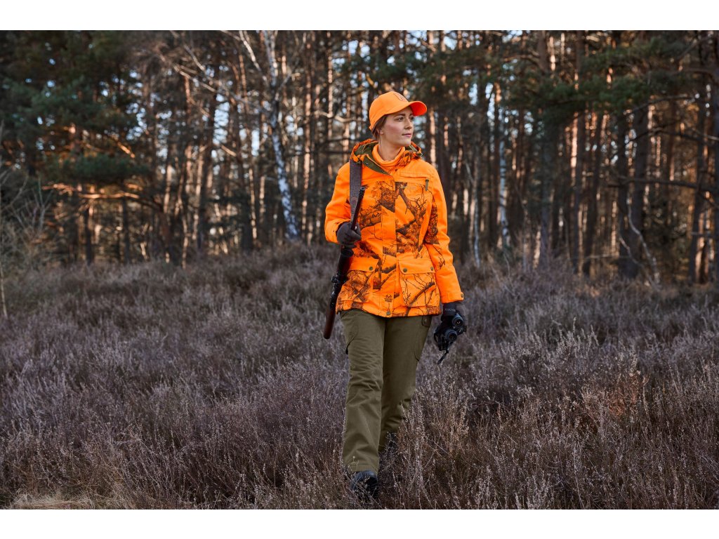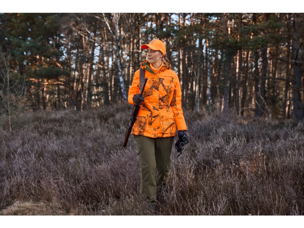 Zimná bunda Deerhunter Lady Eagle, vybavená vysoko funkčnými doplnkami a maskovacím vzorom Realtree Edge-Safety-Orange, je ideálnym spoločníkom pre nátlačkový a návnadový lov v chlade. Vďaka spoľahlivému vatovaniu Deer-Tex-Temp si vychutnáte vynikajúcu tepelnú izoláciu, ktorá zabezpečí teplo a ochranu aj počas veľmi chladných dní. Membrána Deer-Tex Performance Shell vám pritom zaručuje úplnú odolnosť proti vetru a vode, aby vás optimálne chránila pred poveternostnými vplyvmi. Vnútri vás táto bunda presvedčí kombináciou sieťovinovej a prešívanej podšívky, ktorá poskytuje dodatočné teplo, priedušnosť a komfortný pocit pri nosení. Vybavená veľkým množstvom vreciek ponúka táto bunda veľa miesta na všetkom vaše potrebné príslušenstvo. Vďaka tomu je zimná bunda Deerhunter Lady Eagle ideálnou voľbou pre angažovanú poľovníčku, ktorá nechce robiť kompromisy v oblasti funkcie a pohodlia.