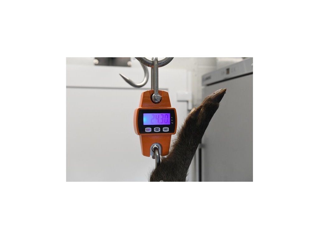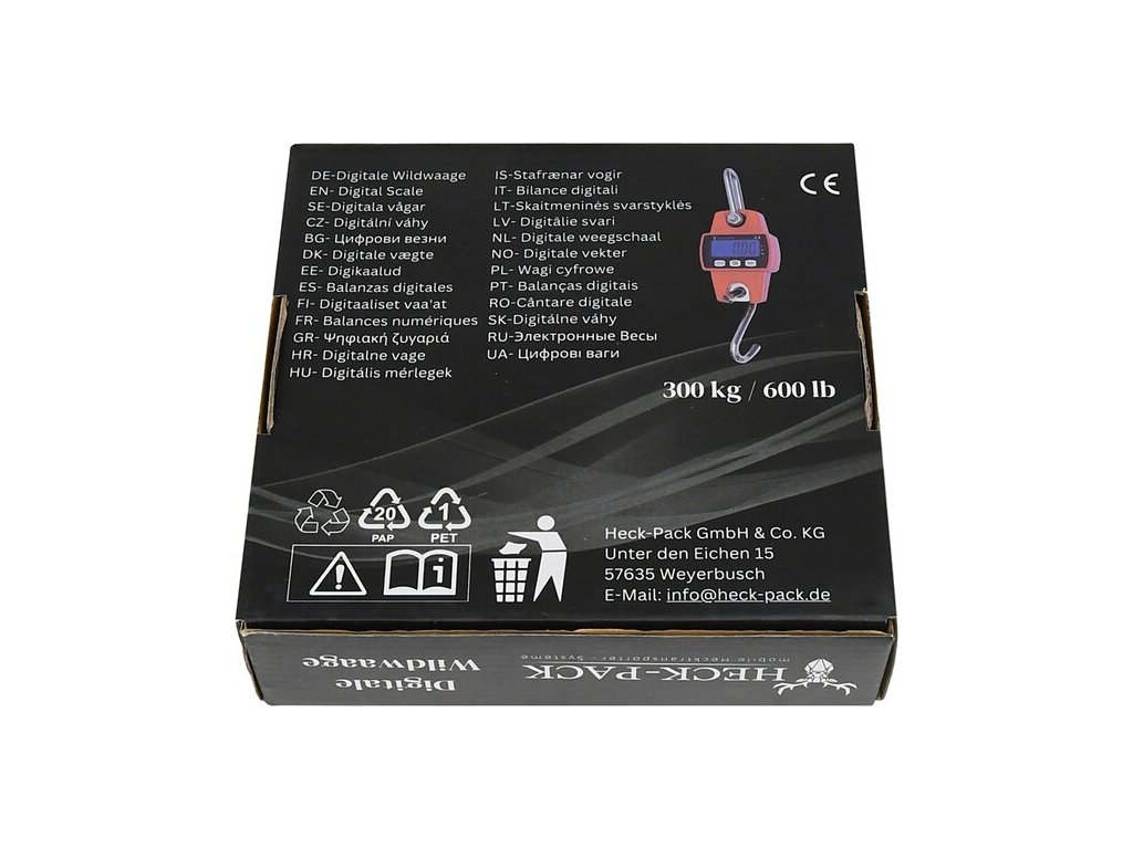 S digitálnou váhou na divú zver od spoločnosti Heck-Pack môžete presne odvážiť ulovenú divú zver. Robustná závesná váha v tlakovo liatom hliníkovom kryte meria hmotnosti do 300 kg s presnosťou na 50 g a ponúka pritom voliteľne zobrazenie v kilogramoch, librách alebo newtonoch. Prevádzka sa realizuje prostredníctvom troch AA batérií (súčasťou balenia).