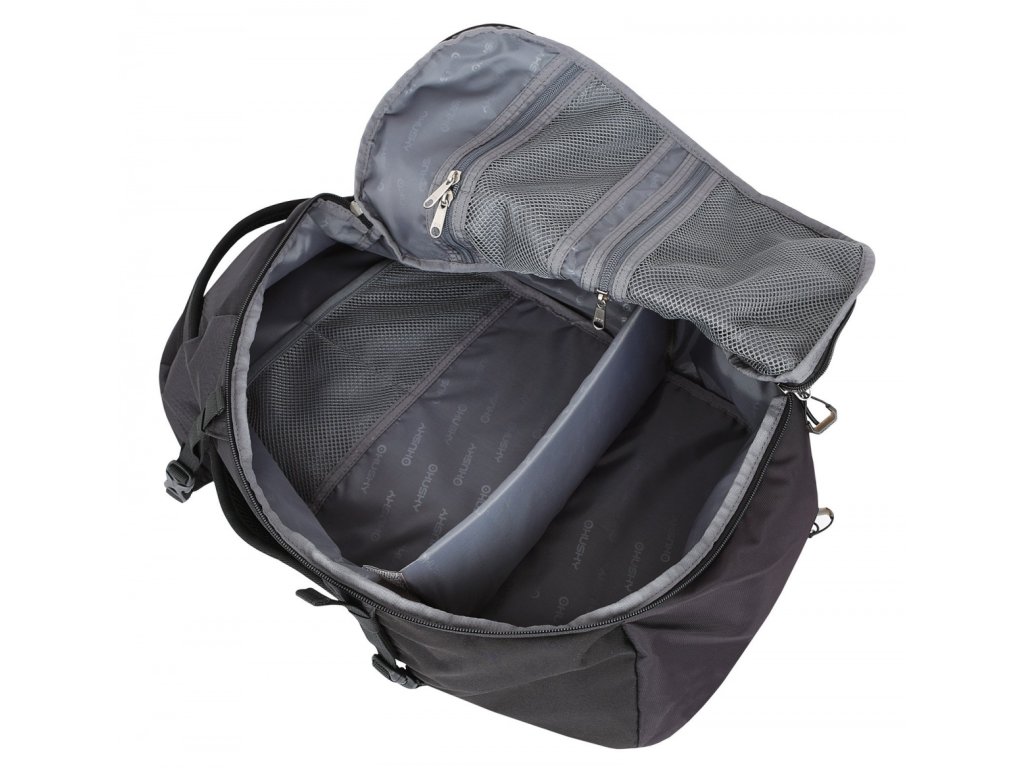 - Výbava batohu Crewtor: 1 hlavná komora, samostatné predné vrecko, bočné vrecko na drobnosti so zipsom, bočné kompresné popruhy, bedrové popruhy, bočné vrecká, vrecko na notebook, pláštenka, reflexné logo.