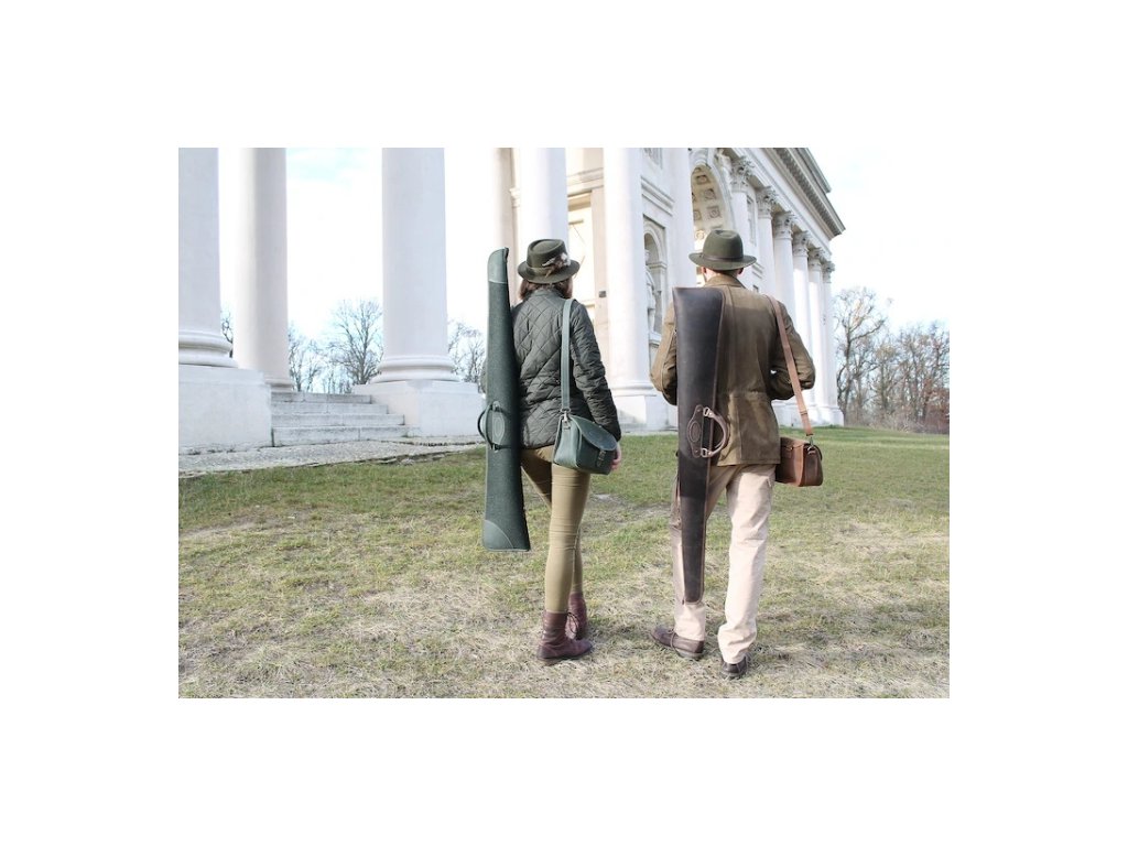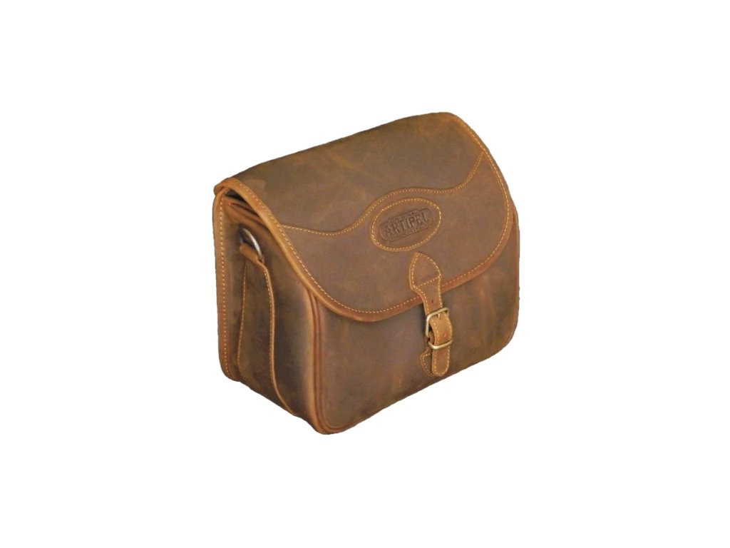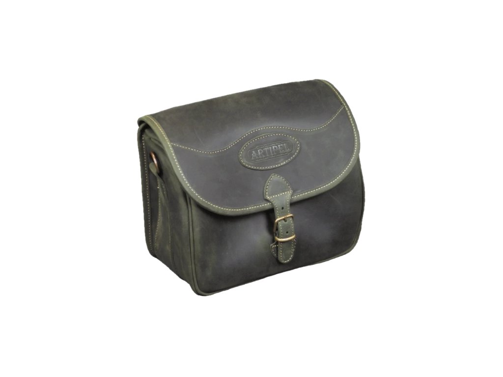 Poľovnícka kožená taška s vodeodolnou úpravou, pevné ušitá, janovský typ. Kapacita 75 nebalených komponentov kalib.12. Obsahuje kožený ramenný popruh.