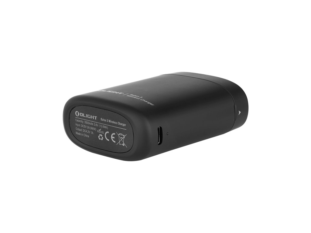 Samotná baterka je vybavená 550 mAh, 3,7V vymeniteľnou nabíjateľnou batériou IMR16340. Táto baterka ale nie je kompatibilná s inými batériami. Spodná časť slotu na nabíjanie používa magnet. Ako napríklad nabíjacie káble s magnetickým chvostom, ktoré sa dodávajú k baterkám Olight Baton S2R alebo Olight Warrior Mini. S Baton 3 môžete využívať rovnaký nabíjací kábel na magnet, len ak máte ďalšie svietidlá Olight Baton.