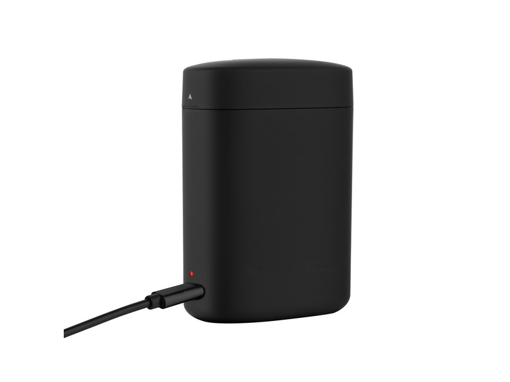 Vo vnútri puzdra na nabíjanie sa nachádza malý LED stav, na zobrazovanie nabíjania. Počas nabíjania svieti červená farba, pri úplnom nabití farba zelená. Na bočnej strane sa nachádza tlačidlo na zapnutie baterky. Pod sebou má LED stav, ktorý svieti pri zapnutom svetle na zeleno. Keď stav baterky klesne na 60% farba sa zmení na oranžovú. Červená farba svieti pri klesnutí nabitia na 10%, neskôr keď je stav baterky len 5%, červená farba bliká. Baterka sa úplne nabije len za 1 hodinu.
