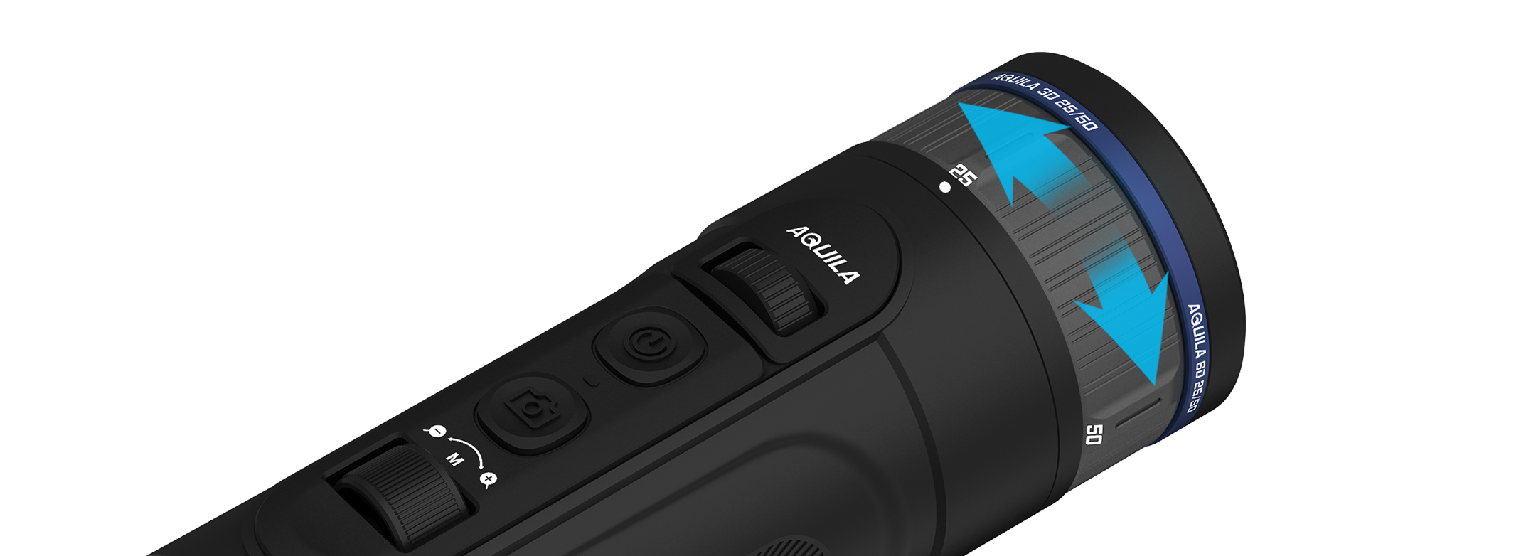 Aquila je navrhnutá tak, aby sa dala pohodlne používať aj len jednou rukou. Vďaka praktickému prstencu na zaostrovanie môžete rýchlo a presne upraviť obraz bez zbytočného presúvania rúk. Tento ergonomický dizajn je ideálny pre pravákov aj ľavákov, čo robí zariadenie maximálne užívateľsky priateľským aj v náročných podmienkach, napríklad počas lovu, alebo taktických akcií.