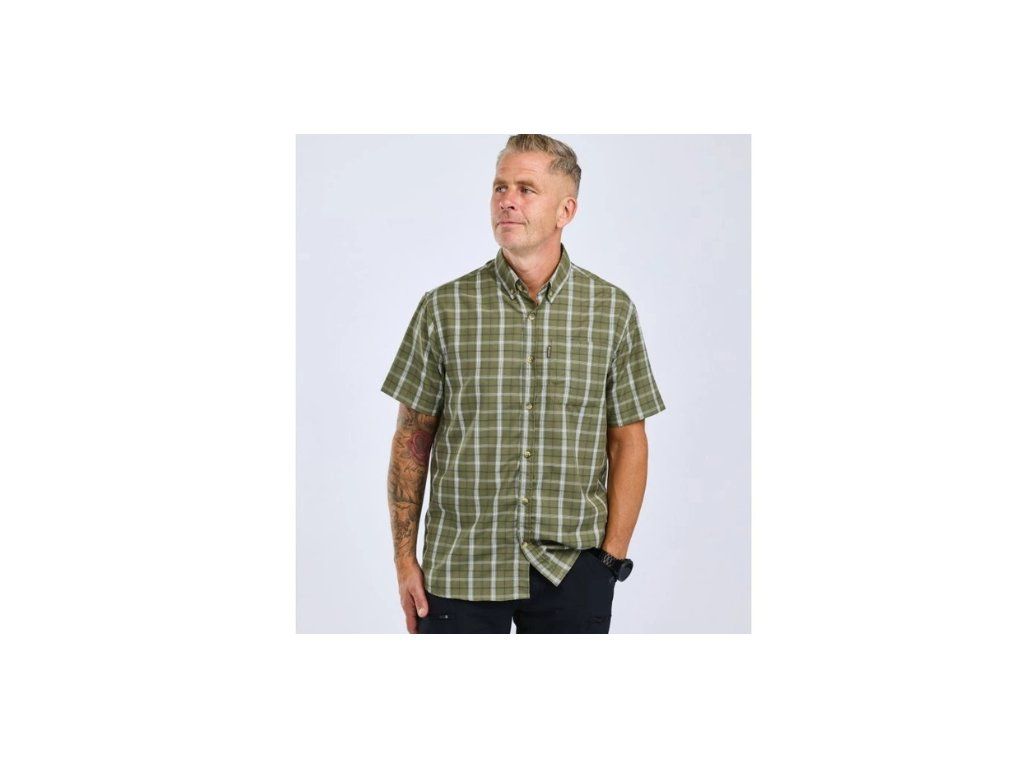 Pánska košeľa s krátkym rukávom v tradičnom štýle a golierom na gombíky. Košeľa má predné zapínanie na gombíky a praktické otvorené náprsné vrecko. Materiál je nenáročný na údržbu a takmer sa nekrčí. Nadčasový dizajn kombinuje kockovaný vzor s mäkkou tkaninou, ktorá je ľahká a vzdušná, čo z nej robí skvelú voľbu ako do práce, tak na voľný čas vonku.