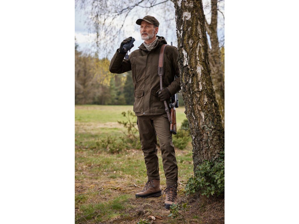 Pánska poľovnícka bunda Percussion Rambouillet Original je vybavená množstvom užitočných vreciek pre vašu výbavu: dve priestranné zásuvné vrecká s integrovanými držiakmi nábojov a manžetou so zapínaním na patentové gombíky, Napoleonove vrecko, dve náprsné vrecká s gombíkmi a veľké vrecko s nepremokavou a umývateľnou podšívkou a zipsami v hornej časti a na bokoch na použitie vrecka ako podložky na sedenie. Dodatočne je našitých 6 vnútorných vreciek: dve na zips, dve so zipsom a sieťovanou podšívkou, jedno na nôž a jedno vrecko na mobil.