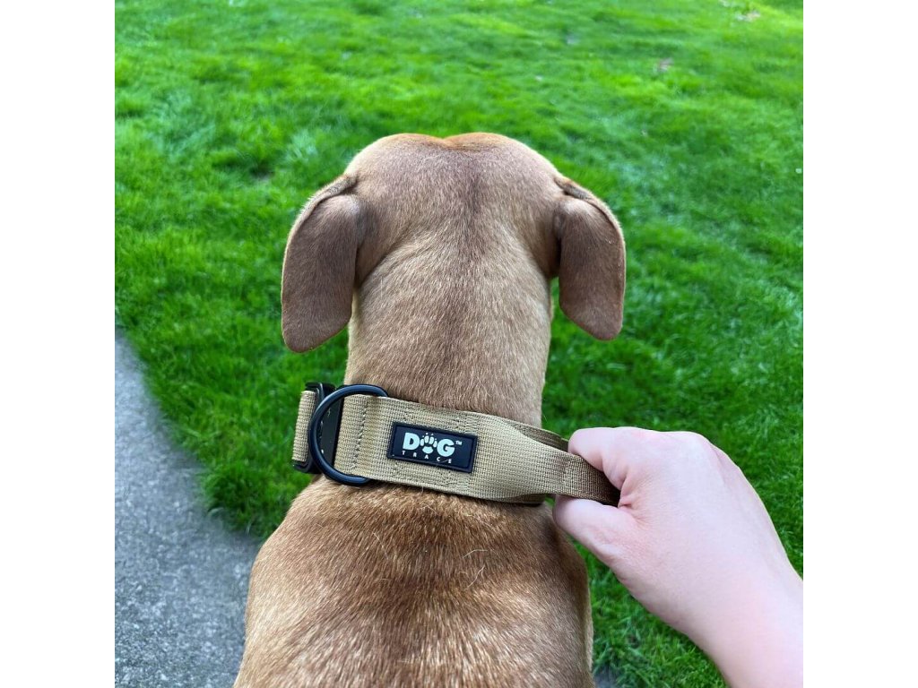 Popis produktu Taktický obojek K9 pro psy s rukojetí, khaki, velikost. S - XL