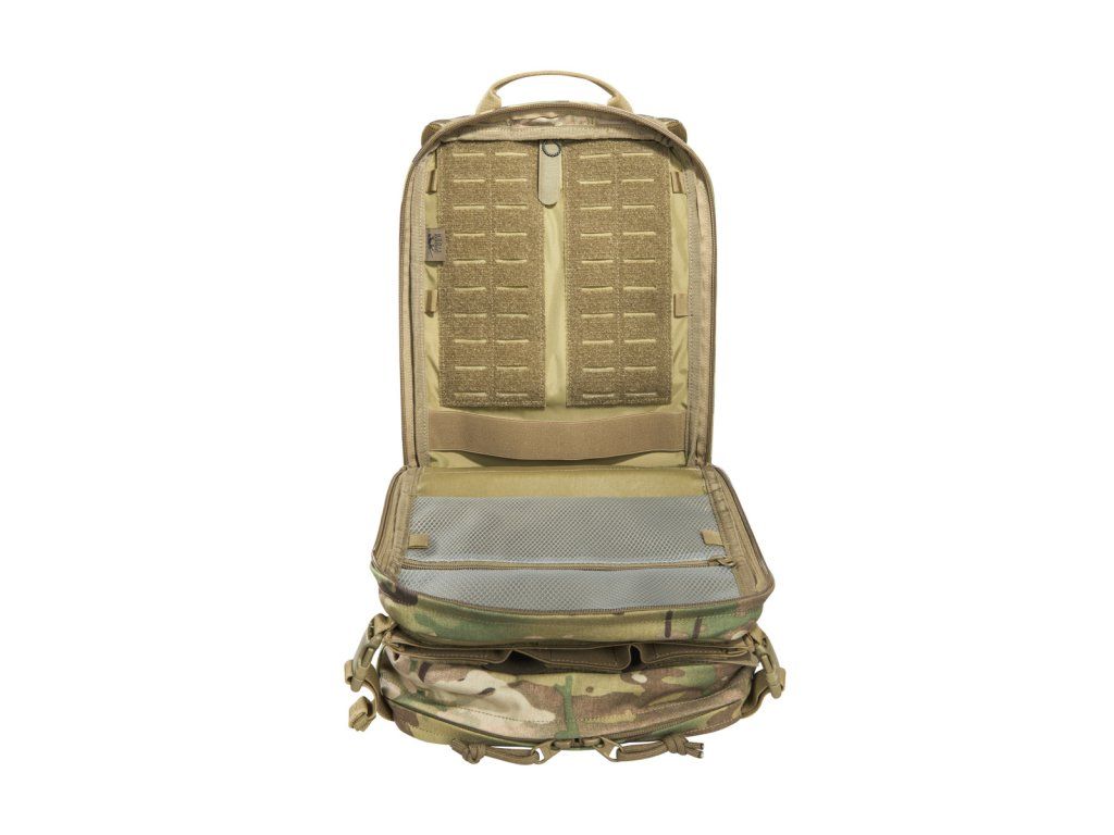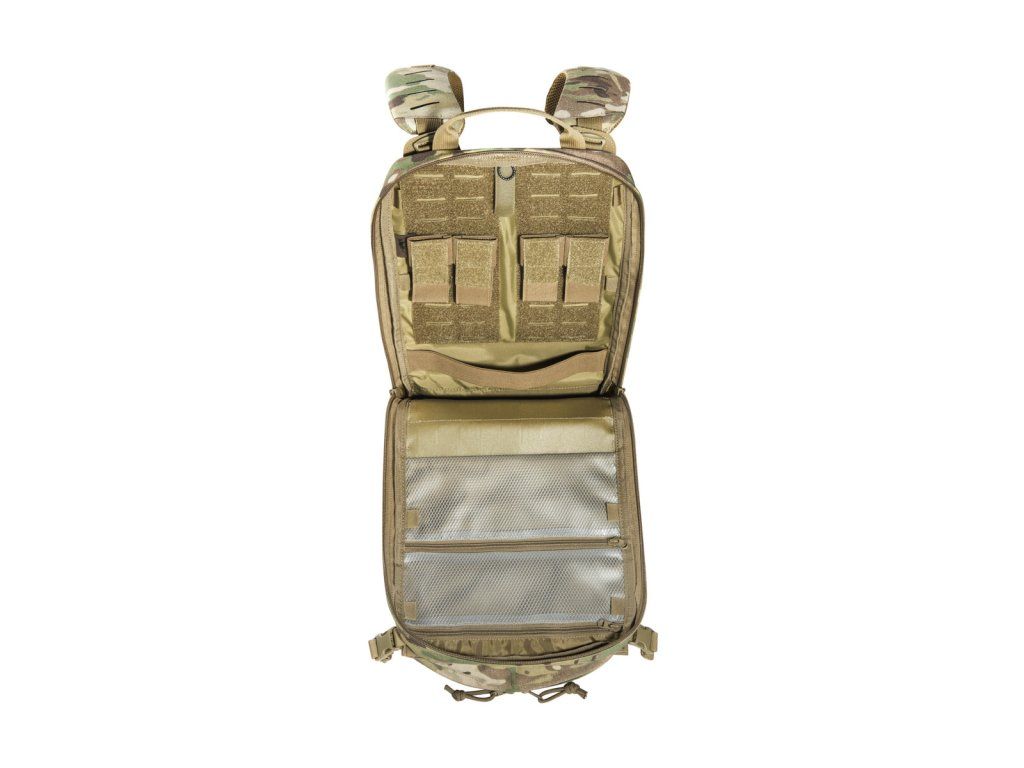 Ľahký taktický batoh s objemom 14 litrov pre modulárne použitie v multicam. S tromi prednými vreckami (čiastočne sklopnými alebo odnímateľnými), prípravou na hydratačný systém, systémom MOLLE so suchým zipsom a systémom MOLLE reverznej ochrany na chrbte a adaptérom na nosič plátov.