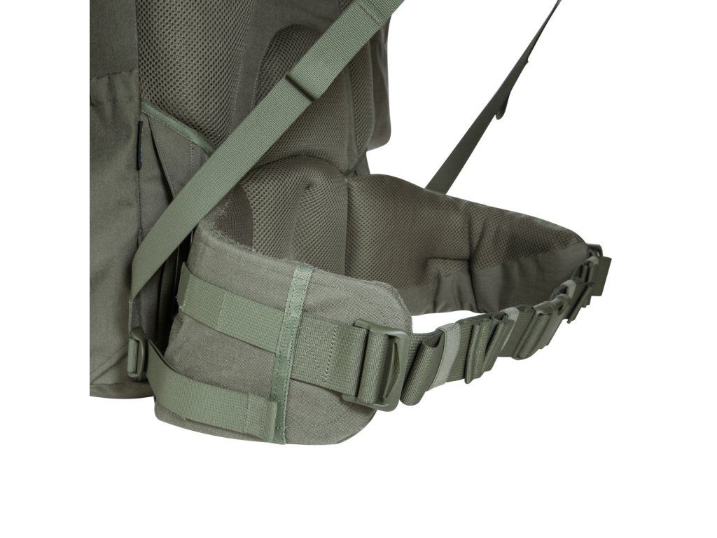 Vďaka vysoko výkonnému nosnému systému, ktorý sa dá prispôsobiť dĺžke chrbta, je tento misijný batoh vhodný na prepravu ťažkých nákladov. Batoh s horným plnením ponúka veľký predný otvor na zips, samostatnú spodnú priehradku, bočné vrecká a výškovo nastaviteľné veko s priehradkou vo veku. Predná časť a boky sú vybavené systémom MOLLE. Okrem toho má batoh vpredu systém šnurovania a odnímateľný držiak na prilbu.