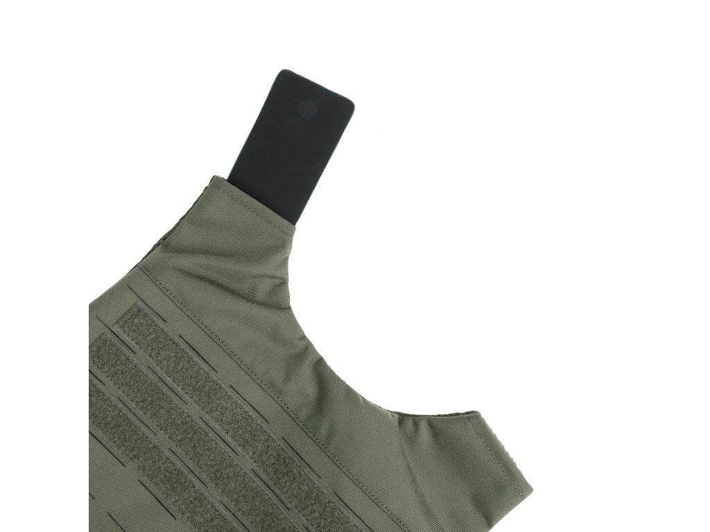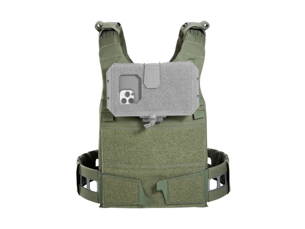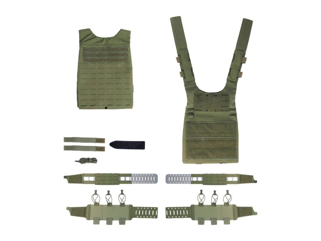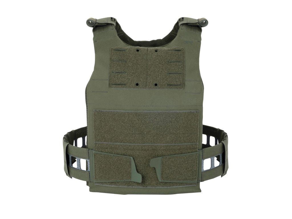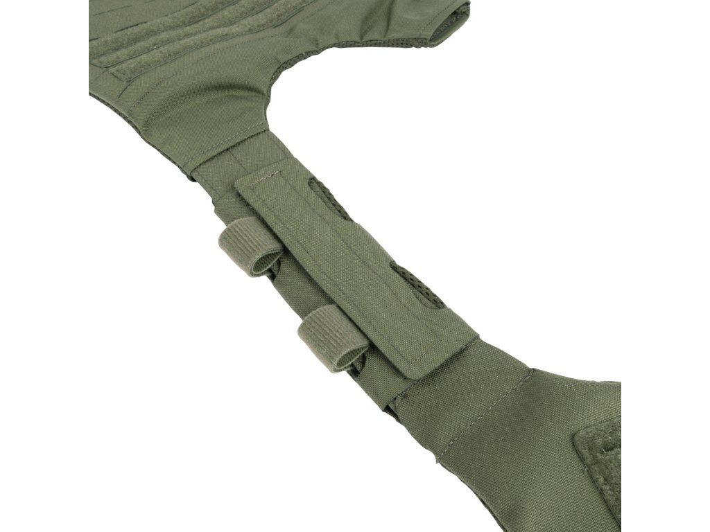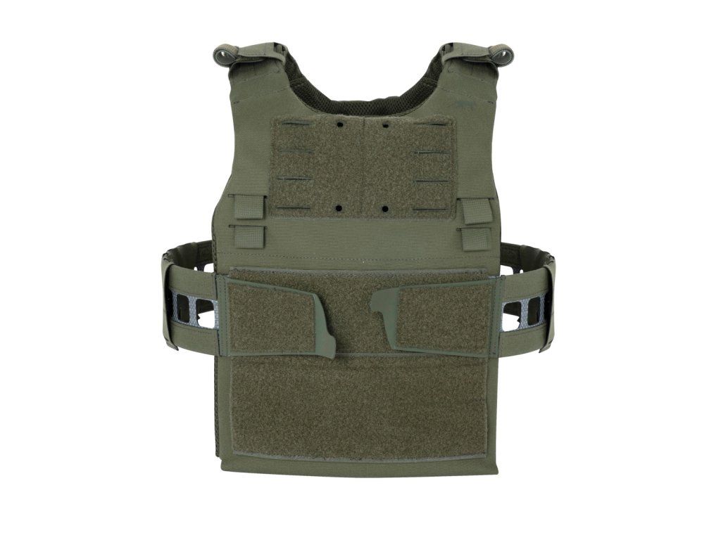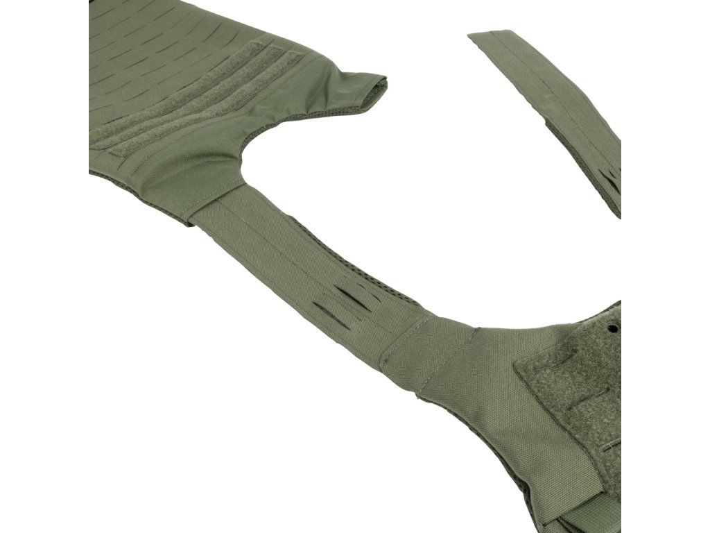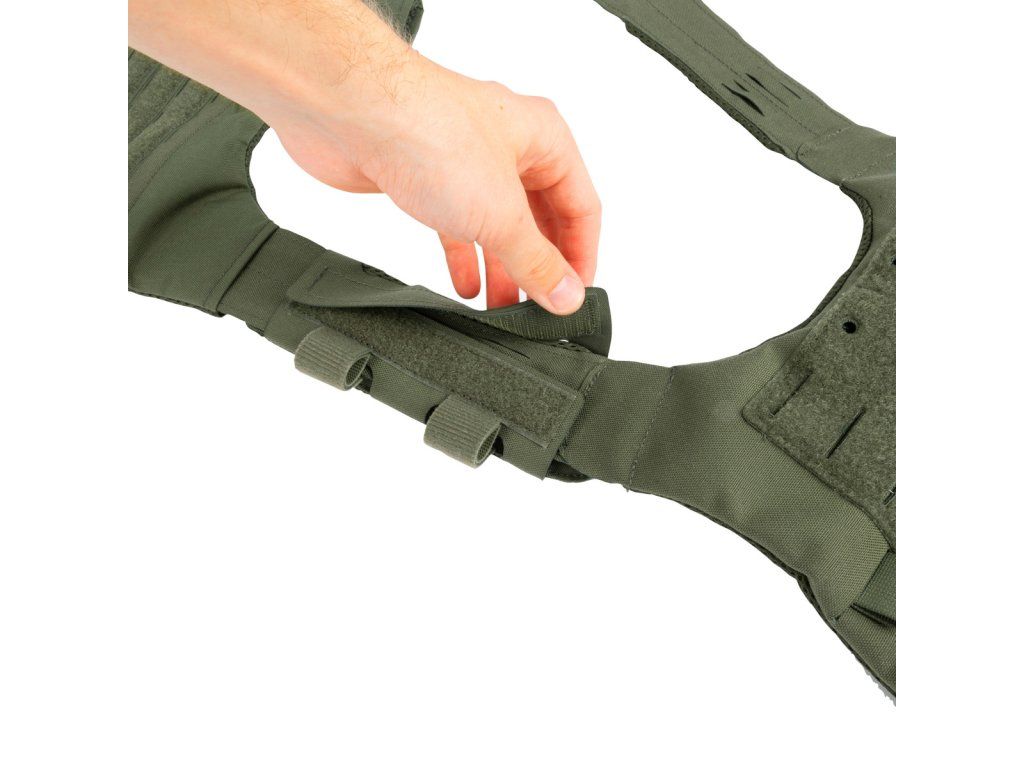 Vďaka bočnému pásu (cummerbund) vystuženému materiálom Tegris® je tento nosič plátov mimoriadne ľahký, no zároveň si zachováva vysokú stabilitu. Bočný pás je vybavený laserom vyrezávanými otvormi s MOLLE rozostupom a v prednej časti ho možno výškovo zafixovať do dvoch rôznych polôh. Maximálnu voľnosť pohybu a individuálne nastavenie dĺžky zabezpečuje elastický upínací prvok umiestnený priamo na bočnom páse. Súčasťou je aj odnímateľný plochý MOLLE panel, ktorý umožňuje rýchlu konfiguráciu alebo operatívne zhodenie nesenej výstroje podľa potreby.