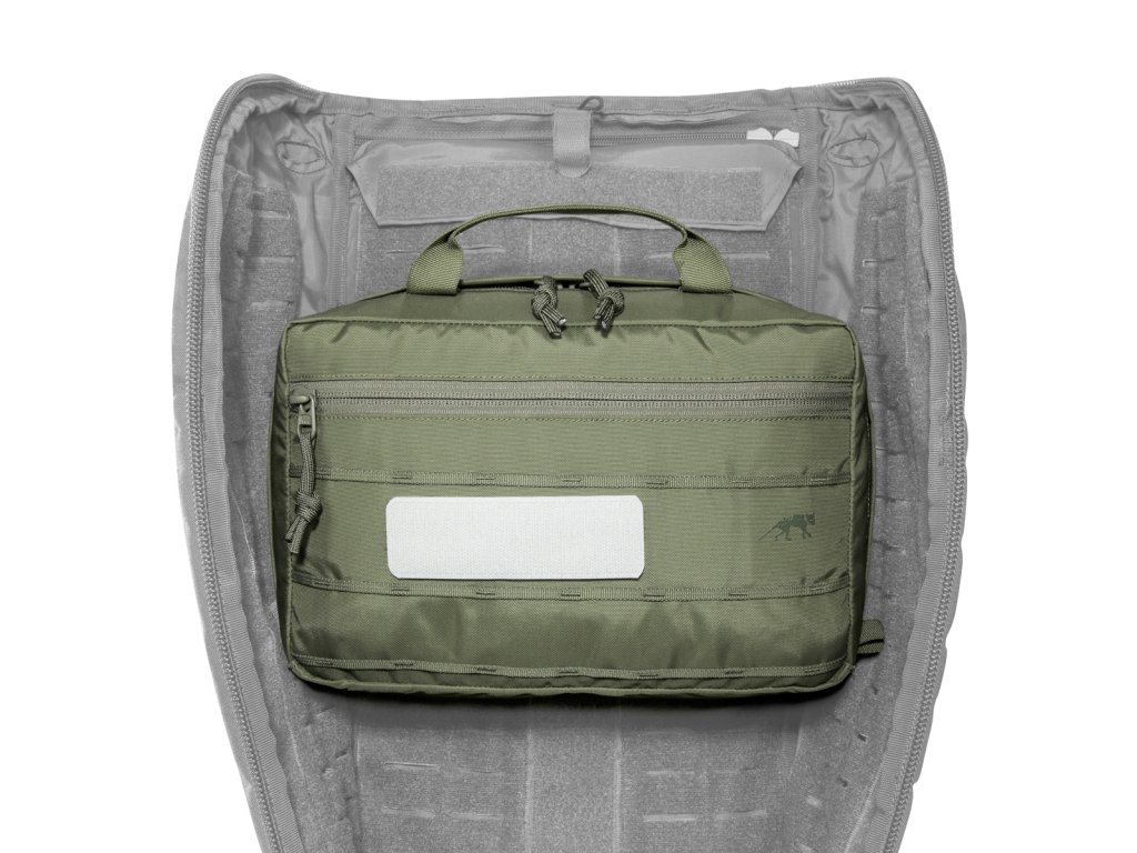 Viacúčelové puzdro TT Pouch VL sa dá pripevniť k modulárnym batohom pomocou veľkých, zakrývateľných suchých zipsov na vonkajšej strane. Vo vnútri má sieťované vrecká, pútka a organizér.
