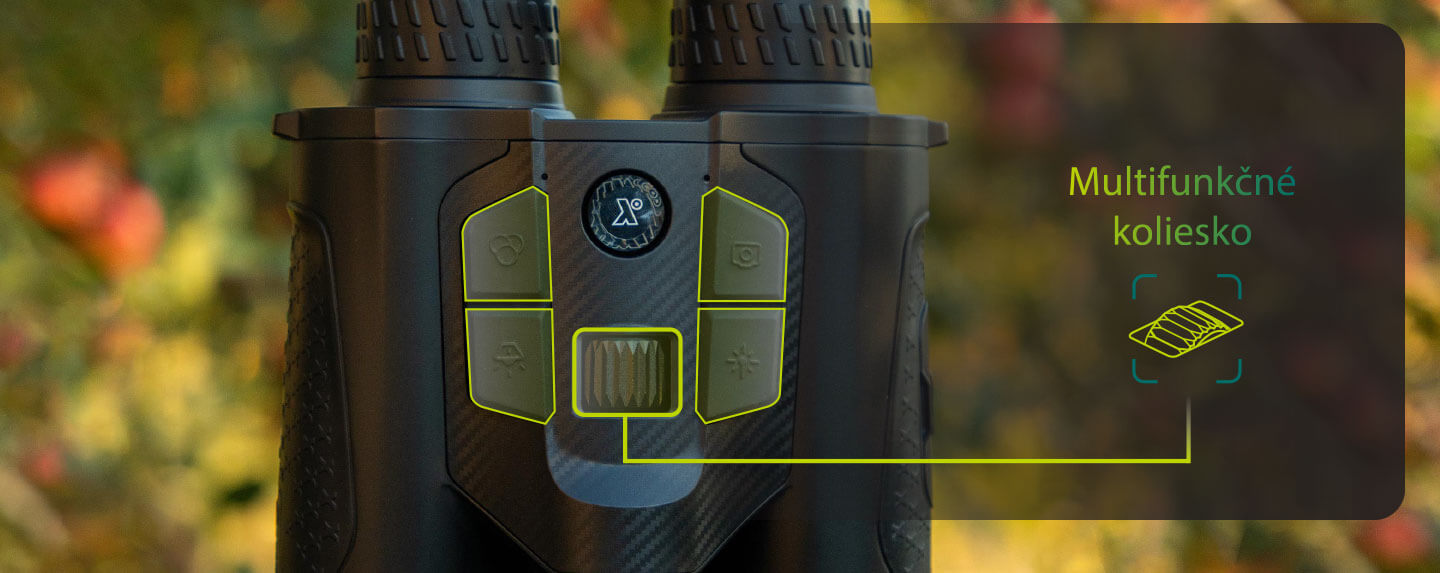 Multifunkčné koliesko v kombinácii so štyrmi tlačidlami napodobňuje mechanizmus zoomu tradičného optického ďalekohľadu. Tento intuitívny systém umožňuje ľahké "slepé ovládanie – tlačidlá tak môžete pohodlne používať aj bez pozerania na zariadenie alebo v tme.