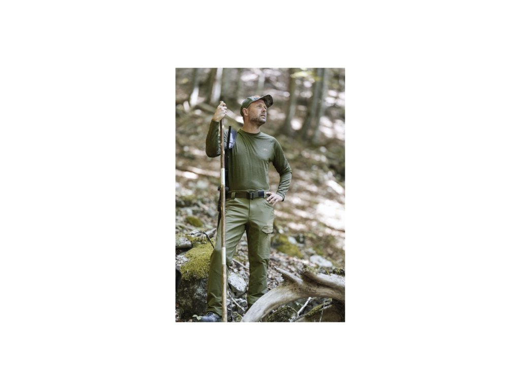 Košeľa je dostupná vo farbách tmavá olivová a HunTec Camo. V monochromatickej verzii bola priadza prefarbená; to vytvára príťažlivý melanžový vzhľad. HunTec Camo, na druhej strane, bol vytlačený až potom. Výsledok: trochu hladší pocit s jemným leskom. Mäkké a pohodlné na nosenie – musíte mať!